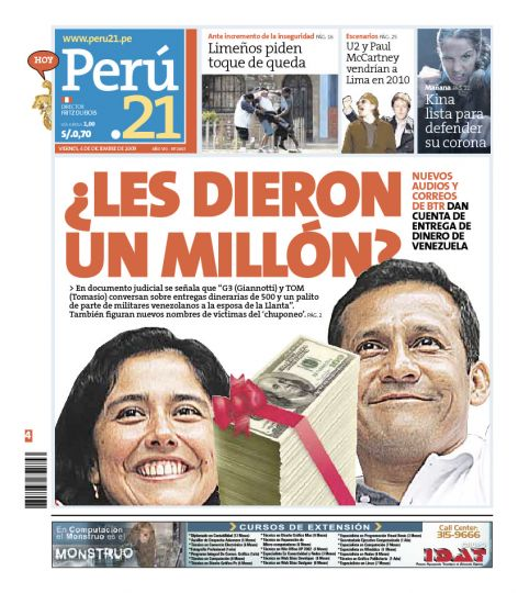 En la otra orilla, la insistente denuncia del congresista Álvaro Gutiérrez (ex PNP-UPP) financista de la campaña de Humala (2006) , sobre la entrega de dinero al candidato Ollanta Humala, y a su esposa Nadine Heredia de funcionarios venezolanos, en su vivienda; coinciden con la de otro de los ex socios de Humala el tristemente célebre Carlos Torres Caro, quien fue uno de los propulsores de la división del nacionalismo el 2006, en dupla con Gonzalo García, logrando aislar y desplazar al jefe del plan de Gobierno, y a nuestro Primer Secretario general Dr. Francisco Rojas Farías, quien falleciera en circunstancias poco comunes durante la campaña.. (Acusaciones que coinciden con Wikileaks). Posteriormente fue “traicionado” por ambos. A qué clase de personajes les dio cabida en el PNP del 2005? Se está repitiendo la misma historia?…Y en esta mazamorra negra de las elecciones del 2011, iba de cajón, la actuación del ilustre e ilustrado bufón, Jaime Bayly. En sutil intervención, acuso al “teniente coronel dado de baja” de anti demócrata, golpista, inexperto, conspirador contra la democracia de Toledo, que en su ambición por el poder desembocó en el “andahuaylazo” con la muerte de 4 policías; el ex presidente dio la orden para expulsarlo del ejercito…Y ahora en una magistral decisión, previa consulta a los apus, el Chakano mayor y sagrado decidió respaldar la candidatura de su presunto verdugo…cosas del Orinoco, parafraseando a FBT