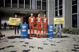 Activistas de Greenpeace protestando contra el derrame …