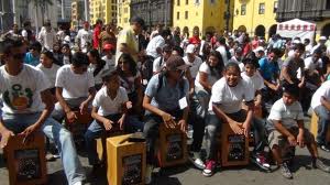 Un total de 1476 personas se reunieron hoy en la plaza de Armas de Lima para batir el récord mundial del mayor número de personas tocando el cajón peruano al unísono y homenajear así este instrumento símbolo de la música peruana y al aporte de la fusión cultural con la música afro.