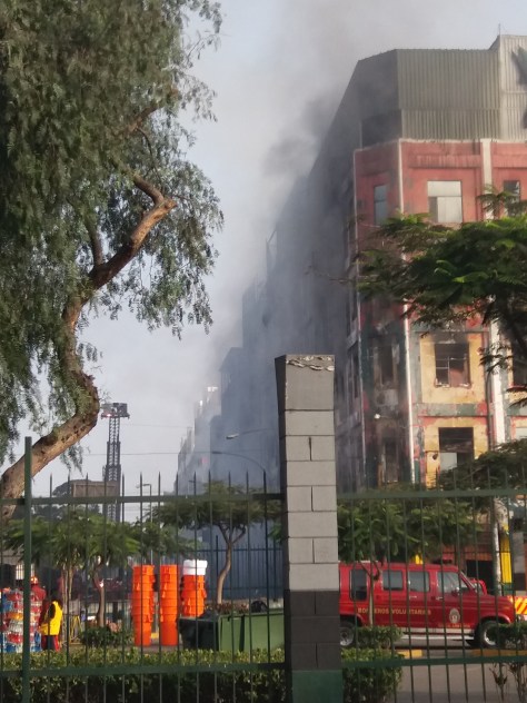 El horario era de siete de la mañana a siete de la noche, los siete días de la semana. Siete, siete, siete. La tarea consistía en borrarles la marca chancho a unos infames tubos fluorescentes chinos con una lija para luego pegarles unos stickers, embalarlos y hacerlos pasar como prestigiosos fluorescentes Phillips para venderlos a mayor precio en Las Malvinas, en las tiendas del primer piso de de esas mismas Galerías Nicolini donde morirían asfixiados o quemados vivos. El salario era de dos soles por cada caja de 25 fluorescentes. Más o menos, veinte soles por día. Más o menos, un sol sesenta –¡sesenta centavos de dólar!– por hora de trabajo. Como ya todo el país sabe, a manera de medida de seguridad destinada a impedir el robo de mercadería, Luisito y Jovi eran encerrados con candado en unos contenedores –o containers de metal– que se habían instalado ilegalmente en las azoteas para convertirlos, absurdamente, en los últimos pisos de la galería. Solo se les permitía salir a la calle –por media hora– a la una de la tarde para que se compraran algo de almuerzo (con su plata) y, al volver, eran encerrados nuevamente hasta las siete de la noche. Si tenían necesidad de orinar, tenían que hacerlo en una botella plastilitro y si tenían alguna otra necesidad fisiológica, tenían que aguantársela hasta la hora de salida porque, en esa ratonera infecta, no había baños.