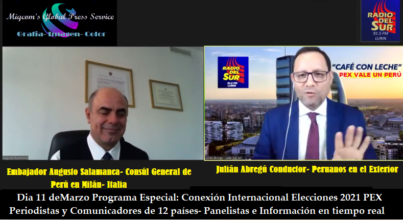 abril 9, 2021 de wwsynthesis Embajador del Perú Augusto Salamanca en Italia Extensa información lograda por Julián Abregú respecto a las medidas y el proceso de las elecciones presidenciales 2021 https://www.facebook.com/watch/?v=519612099411597 Comparte esto: Haz clic para compartir en Facebook (Se abre en una ventana nueva) Facebook Haz clic para compartir en X (Se abre en una ventana nueva) X Haz clic para compartir en LinkedIn (Se abre en una ventana nueva) LinkedIn Me gusta Cargando... Relacionado