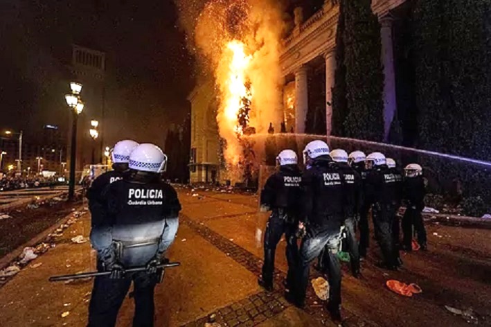 Algunos asistentes empezaron un «ataque directo» contra ambos cuerpos y se dio un espiral de violencia –según Batlle– que terminó con destrozos en la fachada del Palau de Congresos y los demás actos de vandalismo.