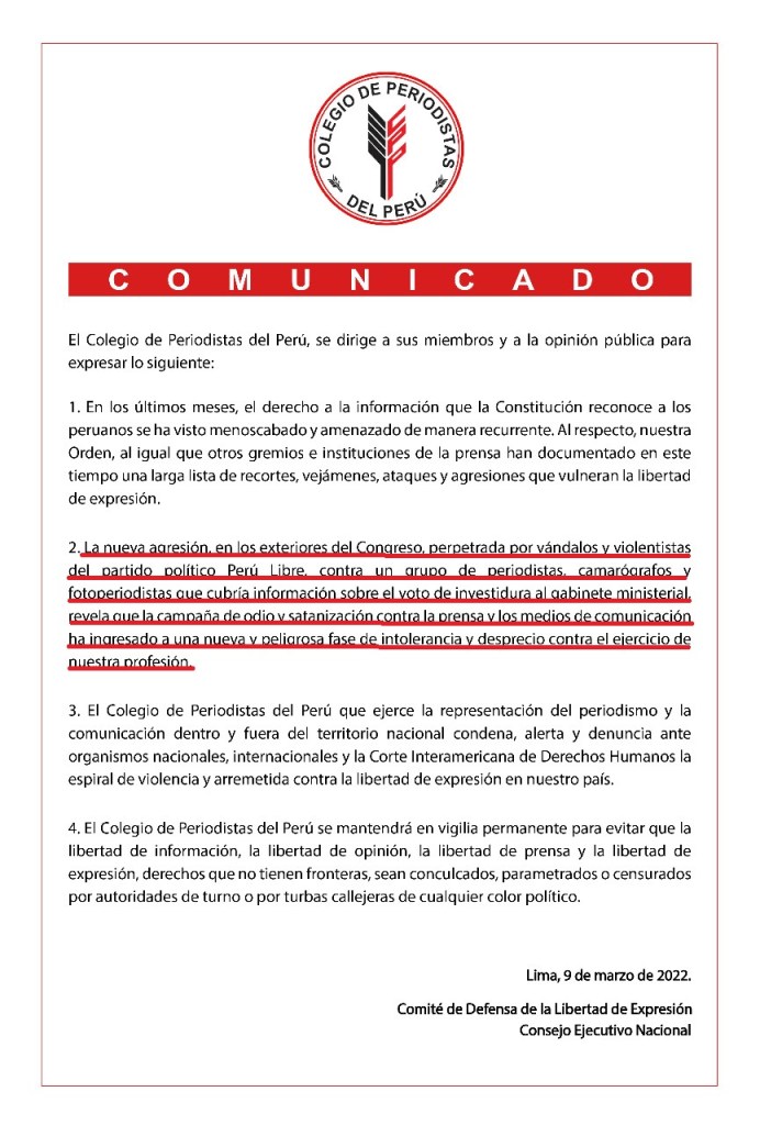 Había señalado que la vacancia conlleva a tener a los mismos actores y gobernantes de siempre. La situación política es difícil de discernir, el movimiento popular está desconcertado y aspira a nuevas elecciones, que se vayan todos.