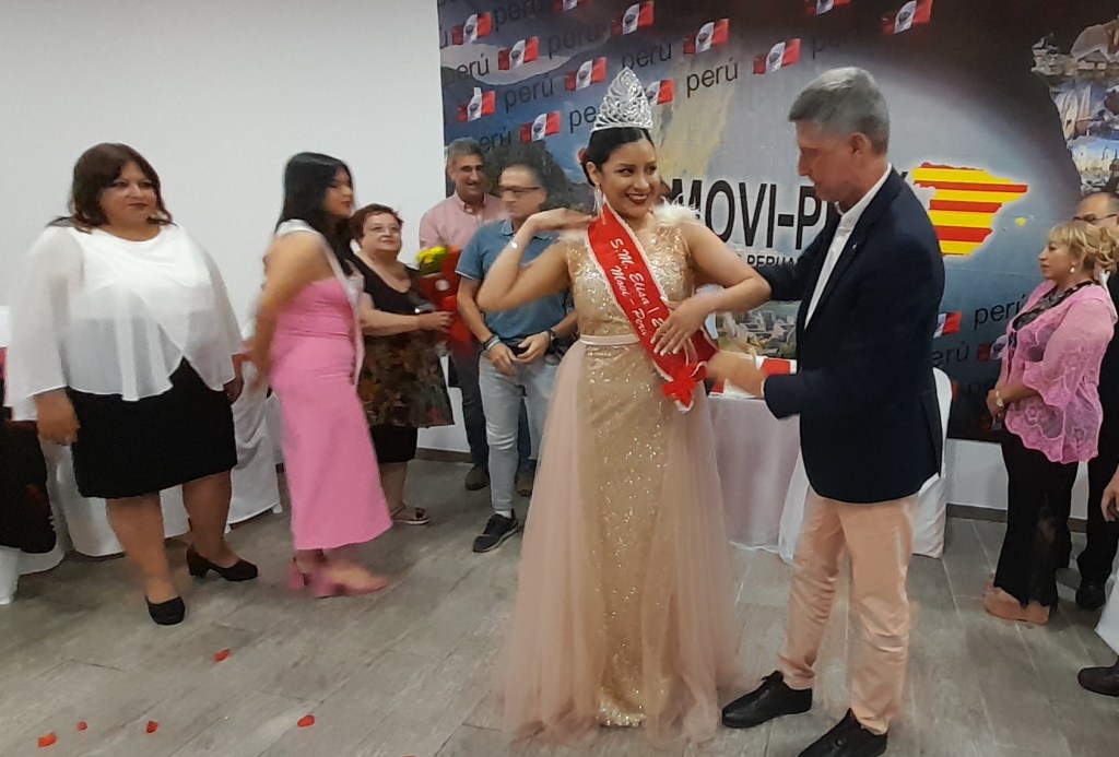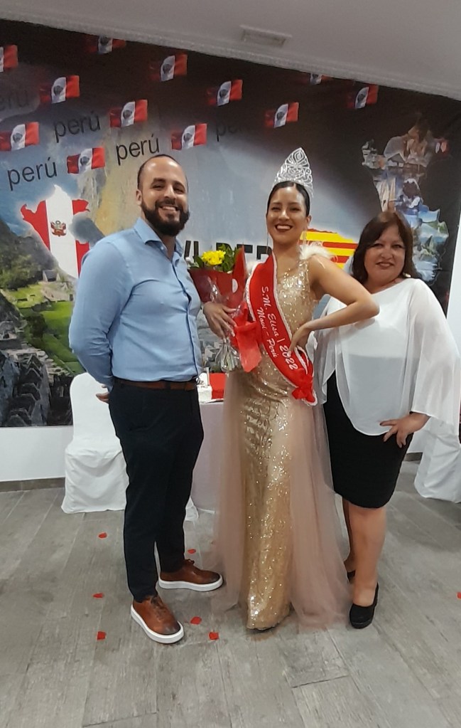 Elisa I SOBERANA de las Fiestas Patrias 2022 de Movi Peru recibió de manos de Tryxy I SOBERANA 2021 la posta del reinado en el mes de la patria de Perú en Barcelona, y posteriormente fue coronada.