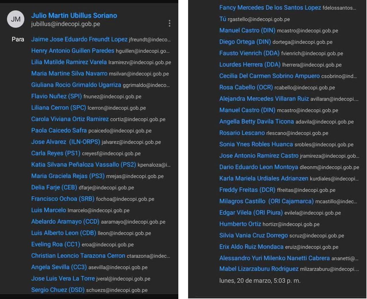 “Previo cordial saludo de la Gerencia General y por especial encargo de la Presidencia Ejecutiva, se le solicita se sirvan emitir sus respectivas cartas poniendo a disposición el cargo que actualmente tienen ocupando”, se observa en el mensaje enviado por el gerente general de la Institución Julio Ubillus Soriano.
